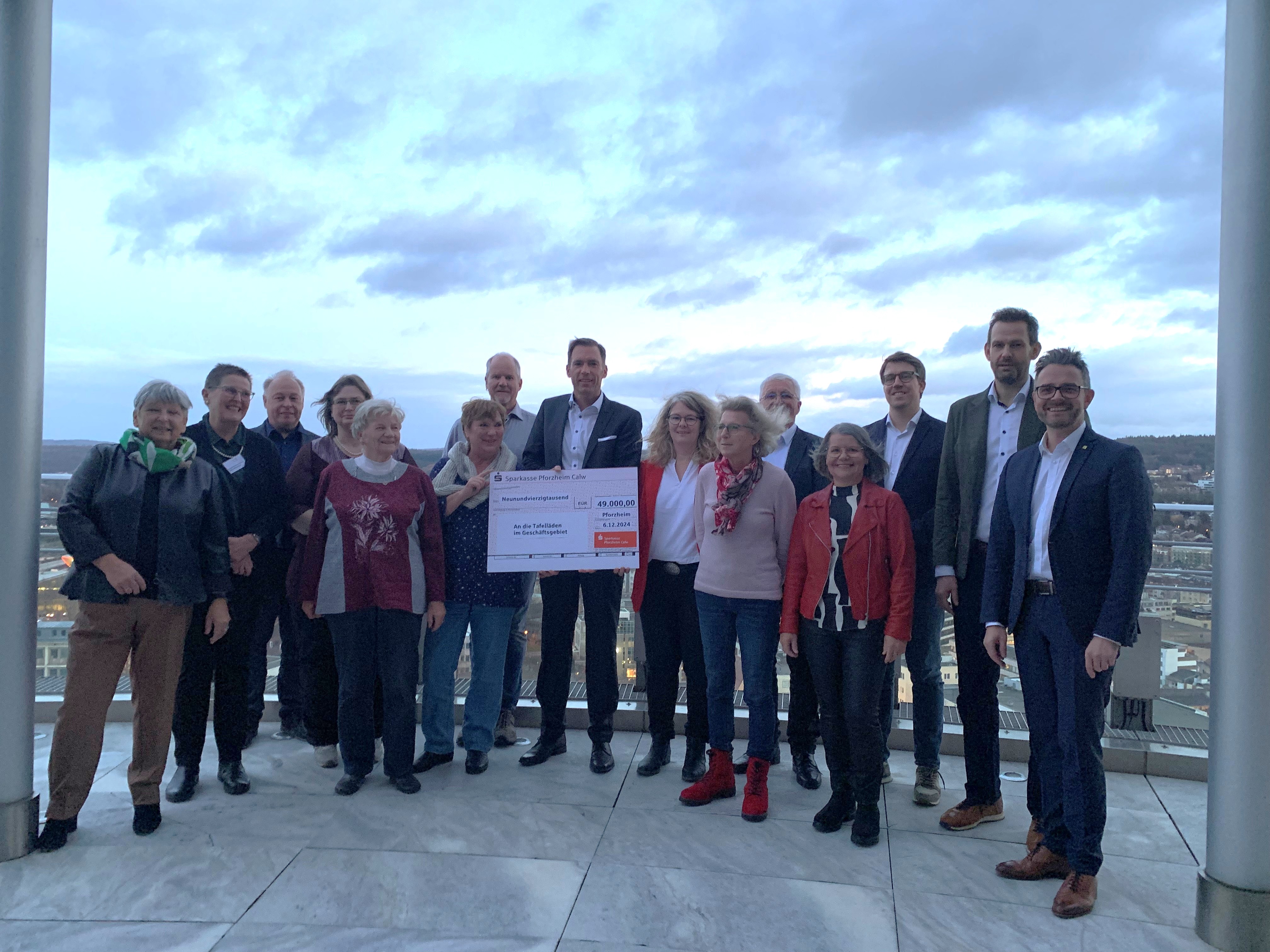 Die Sparkasse Pforzheim Calw hat uns im Rahmen einer kleinen Feier im Sparkassenturm in Pforzheim am Nikolaustag eine Geldspende übergeben. Zusammen mit weiteren Tafeln aus dem Einzugsgebiet der Sparkasse Pforzheim Calw wurde auch die Tafel Oberderdingen mit einer Spende bedacht. Frau Scherer (im Bild ganz links) und Frau Sutoris (4. von rechts) haben die Spende für uns in Empfang genommen. Wir sagen ganz herzlichen Dank an die Sparkasse.